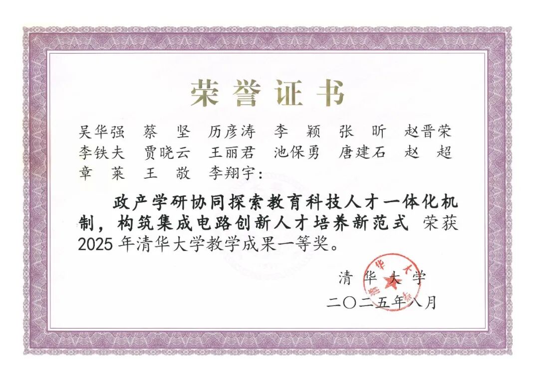 产教融合育人范式获2025年清华大学教学成果一等奖