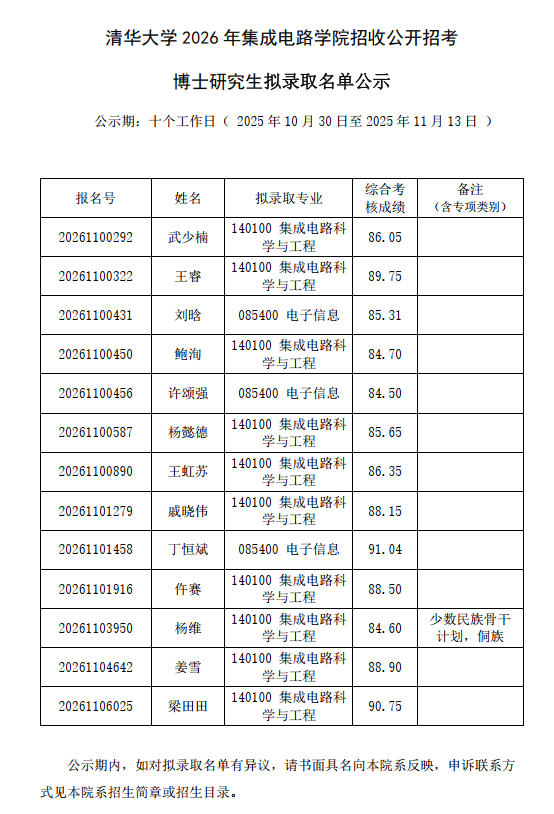 2026年集成电路学院招收公开招考博士研究生拟录取名单公示