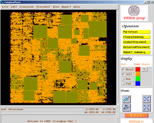 在 EDA 领域,对系统芯片 SOC 设计方法和超大规模集成电路设计自动化技术进行研究,开发了混合模式的布局算法和工具。